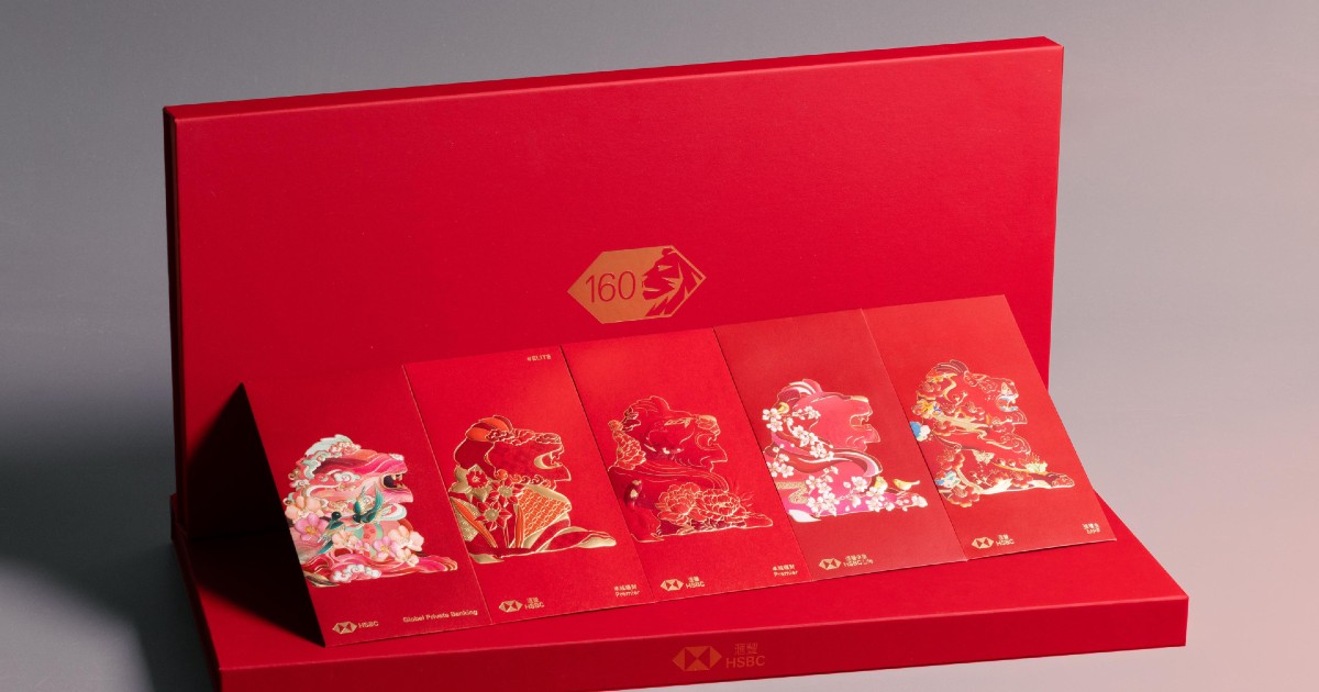 農曆新年將至,今年更適逢滙豐成立160周年,為隆重其事,特意推出限量版紀念賀年利是封套裝,為該行首次為周年誌慶推出賀歲利是套裝。