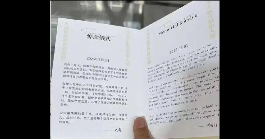 在悼念儀式上,方大同留下了最後的話,「時間不等人,隨着年齡的增長,更能深入理解時間的現實與虛幻。生活給我們帶來了各種各樣的轉折和挑戰,但我認為我們的目標之一應該是以雅緻得體的態度去走完生命之路。祝你在未來的夢想裡,繼續懷抱夢想,持續努力,成長進化,在人生的每個階段充分發揮自己的潛能。」