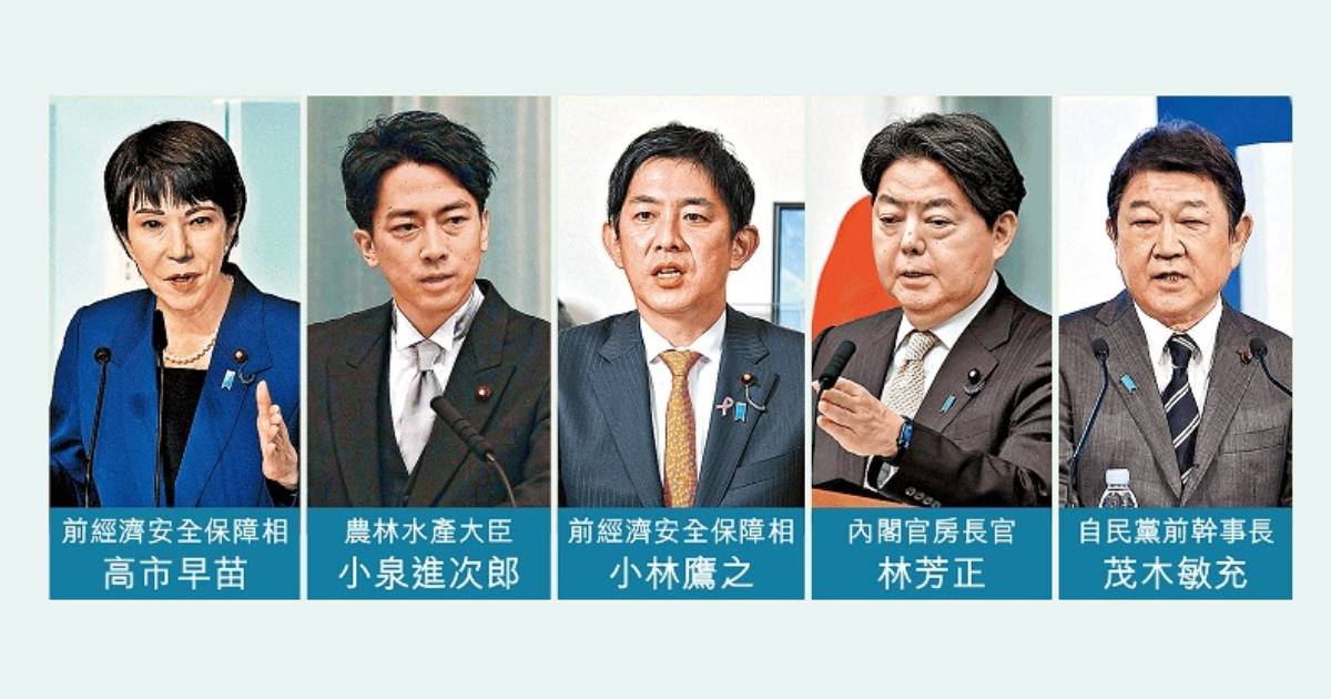 除小泉進次郎外,前外相茂木敏充及官房長官林芳正表明參選,前經濟安全保障擔當大臣小林鷹之據悉亦將於下午召開記者會宣布參選。