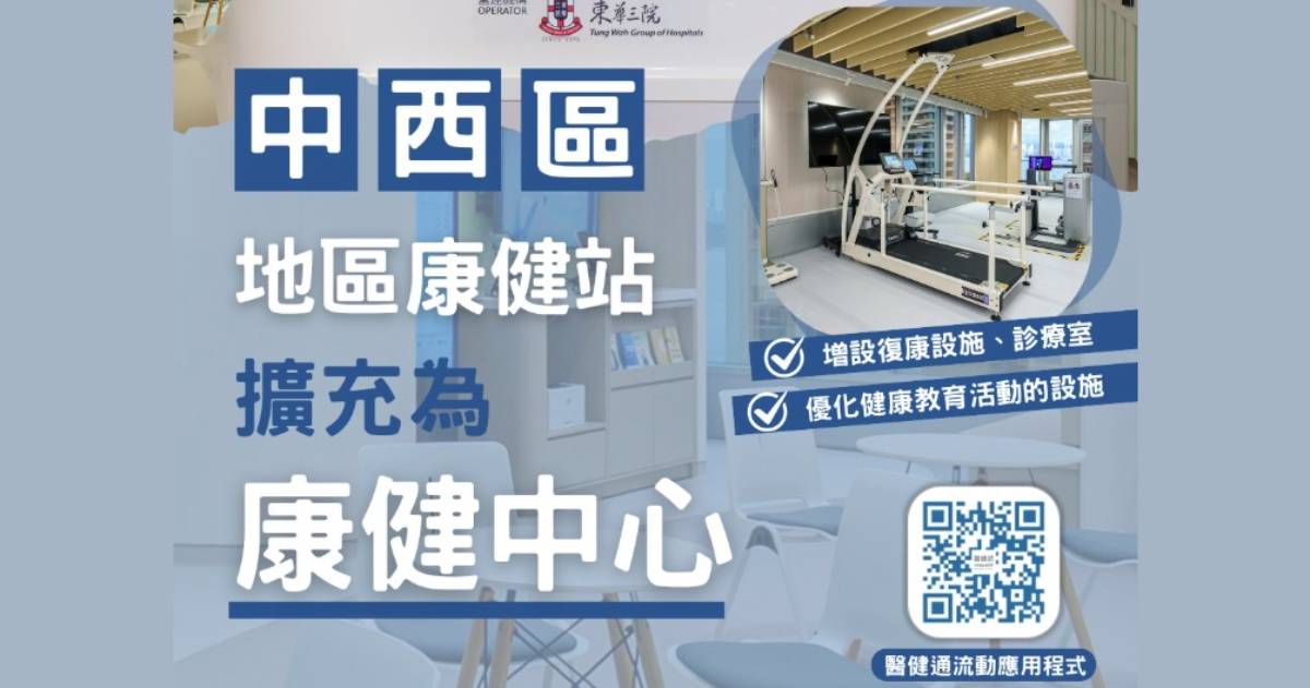 中西區地區康健站已擴充為康健中心,新、舊營運機構已完成交接工作,明日起由東華三院提供全面服務。