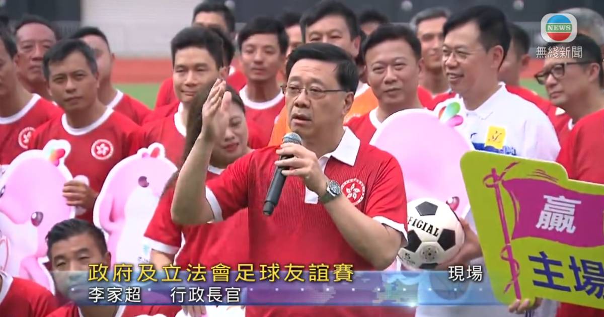 立法會足球隊與政府足球隊今日下午在啟德青年運動場進行友誼賽,行政長官李家超在開賽前表示,今次賽事特別有意義, 因為這肯定是在愛國者治港原則下,行政立法一起「打好呢場波」,更重要是前鋒、中鋒、後衞、龍門的安排,統籌好發展和安全的重要性。