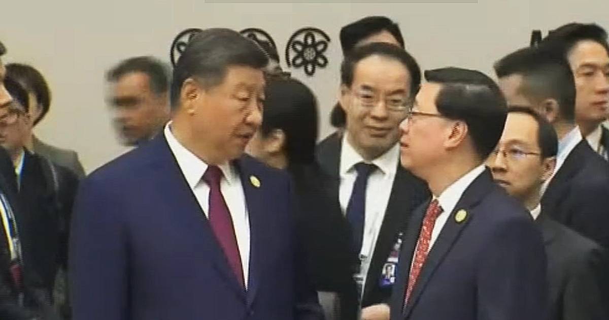 李家超獲安排坐在國家主席習近平旁邊,會議正式開始前有簡短寒暄,習近平與其他國家領袖交談,李家超在旁陪同。