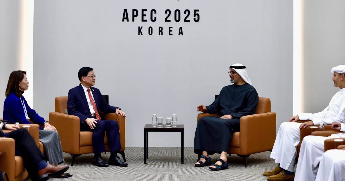 行政長官李家超正在南韓慶州出席亞太經合組織(APEC)領導人非正式會議,期間與阿聯酋阿布扎比王儲Sheikh Khaled bin Mohamed bin Zayed Al Nahyan會面。