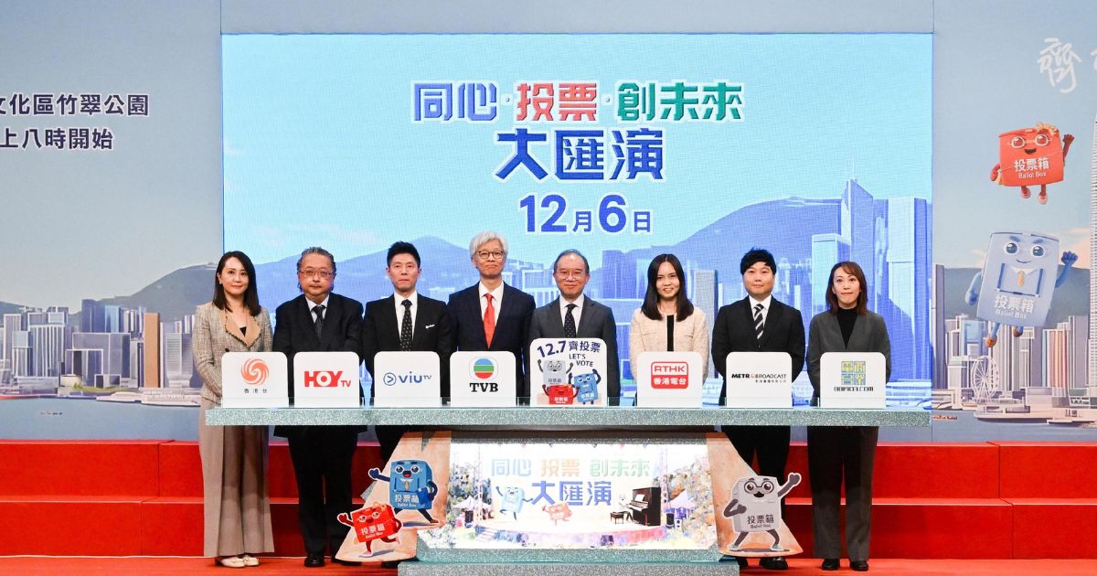 為進一步提升選舉氣氛及社會關注度,呼籲全港選民在12月7日立法會換屆選舉投票日踴躍投票,特區政府將於12月6日晚上8時至10時在西九文化區竹翠公園舉行大型戶外綜藝晚會「同心・投票・創未來大滙演」。大滙演節目會由本港7間電子傳媒,即無綫電視、ViuTV、HOY TV、鳳凰衛視、香港電台、新城廣播及商業電台,共同作現場聯播。