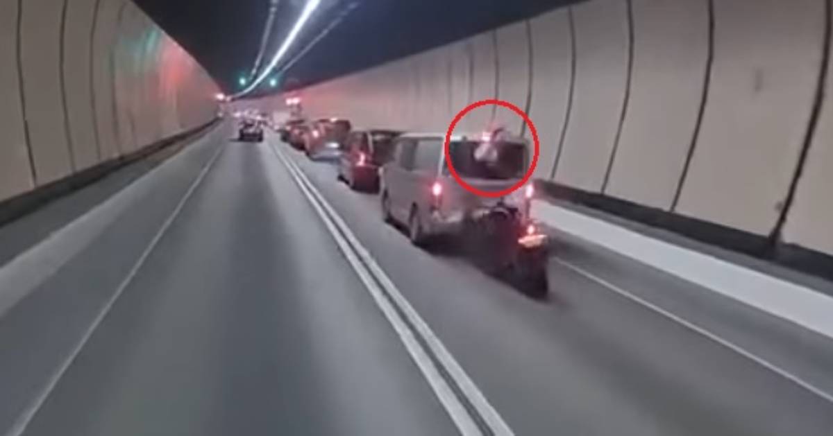 據網傳車Cam片段顯示,今早8時16分許,一輛輕型貨車與一輛電單車在大老山隧道管道內沿快線往沙田方向行駛,駛至隧道緊急出口位置時,輕型貨車因應前車收慢停下,尾隨電單車疑收掣不及,猛撼客貨車車尾,鐵騎士彈起撞爆貨車尾玻璃,直插進車廂內。