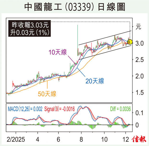港股昨日低開高收,恒指早段跌過177點,跌近雙頂頸線即反彈,陰陽燭出現錘頭,算是利好信號,不過成交縮減至1934億元,不似有大盤掃貨。工程機械股回一回氣又升過,龍頭股中聯重科(01157)昨升3.9%報7.99元,繼續揸住睇10元。 國內工程機械需求回暖...全文