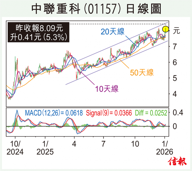 大市上周五紅盤大升逾700點後,昨日市況牛皮,恒指波幅僅189點,收市報26347,升8點,陰陽燭為十字星,料為短線整固,如守穩50天線(25979),後市有望試衝27500關口。 花旗對起重混凝土產品樂觀 中國工程機械工業協會日前...全文
