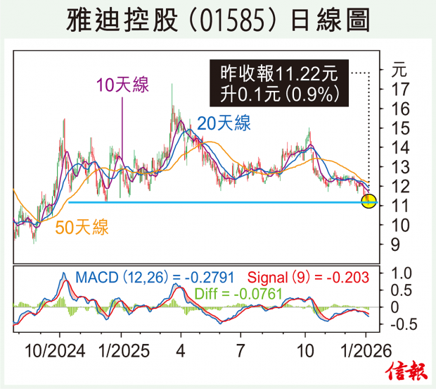 大市回氣一日又升過,恒指昨日收報26710,升363點,有望試衝27500橫行區頂部阻力,如能升破,中線上望3萬大關。 兩輪電動車龍頭雅迪控股(01585)發盈喜,預計去年純利不少於29億元(人民幣.下同),按年最少升1.28倍,主要由於電動兩輪車銷售增加及優化產品結構所致。不過...全文