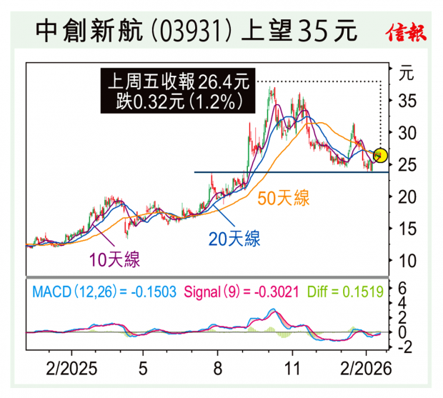 馬年首個交易日,先祝各位財源廣進,身體安康。除夕半日市恒指先挫後揚,收市升138點,報26705,依然在橫行區內反覆。短線料會在50天線(26410)和20天線(26960)之間爭持。 華虹半導體(01347)上月尾大升至124元,本欄去年11月所訂的100元目標價超額完成,其後...全文