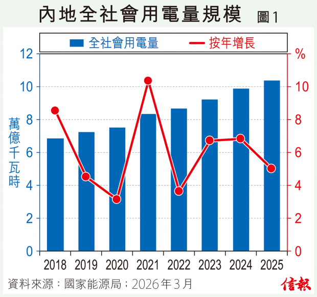2025年,內地電力消費保持增長勢頭,全社會用電量規模突破10萬億千瓦時,較2024年增長5%【圖1】;第一產業、第二產業、第三產業、居民生活用電量分別多9.9%、3.7%、8.2%、6.3%;高端製造業的蓬勃發展形成了新的用電增長驅動力,人工智能等新一代訊息技術加速滲透,拉動互聯網相關服務業...全文