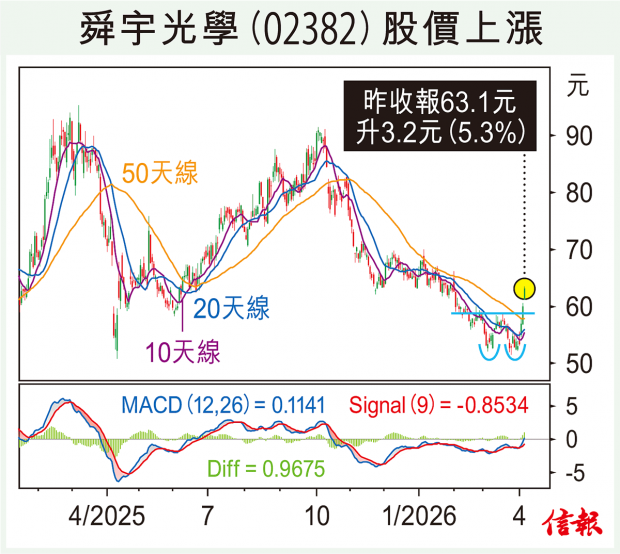 港股假後復活,受美伊暫時停火消息刺激,恒指昨日勁升776點報25893,不過停火只係兩個星期,雙方談判能否達成協議結束戰爭尚有很多變數,不宜過於樂觀。 舜宇光學(02382)上周公布業績,收入432.29億元(人民幣.下同),按年增升近13%再創新高;純利達46.39億元,大增7...全文
