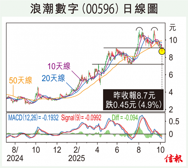 浪潮數字(00596)昨日收報8.7元,急挫4.9%。本欄7月下旬建議於9.1元樓下買入該股,目標價11元於8月初升抵,大家應已沽出,公司基本因素良好,可趁調整部署重新收集。 主攻大型國企客 開發佔優勢 浪潮數字本來主力開發ERP(...全文