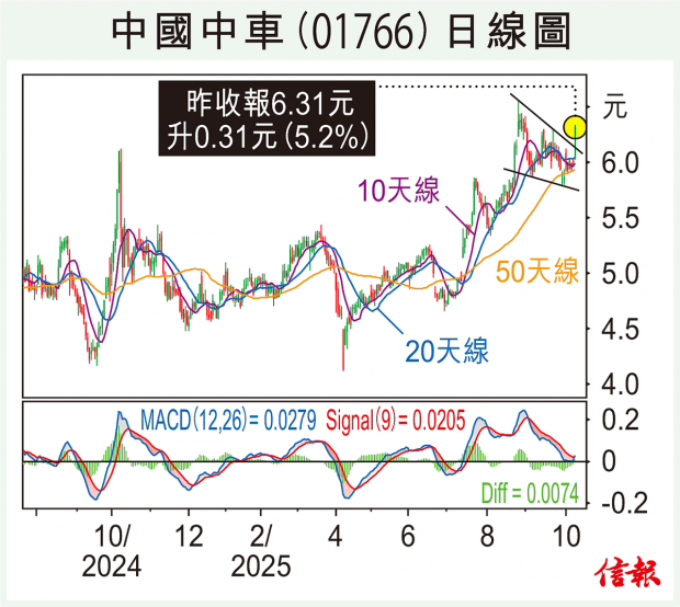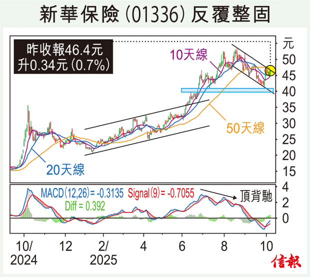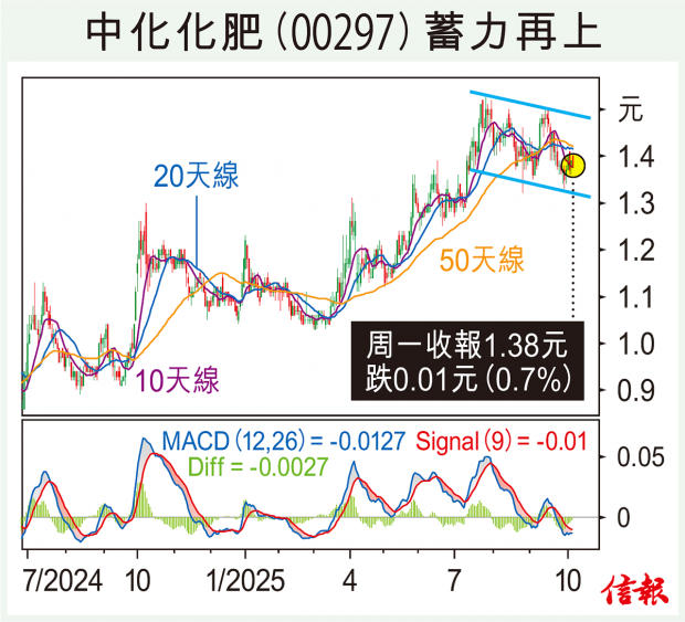 港股假期前調整,恒指周一收報26957點,下挫183點,仍是大漲小回格局,20天線(26481點)是短線支持所在,更重要的支持是50天線(25708點),如守穩此關,後市將繼續沿着上升通道推進。 化肥股中國心連心(01866)過去3個月股價累漲約八成,周一收報8.31元,升4.5...全文