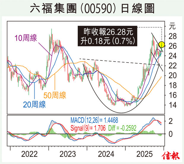 港股昨日出現反彈,恒指收報25935點,升175點,成交金額連日不足2000億元,交投略顯淡靜,橫行走勢未變。恒指雙頂威脅未解除,25000關口不容有失,否則雙頂頸線跌破,可能要見23000點。 六福集團(00590)昨日微升0.7%,收報26.28元,公司日前公中期(截至9月底...全文