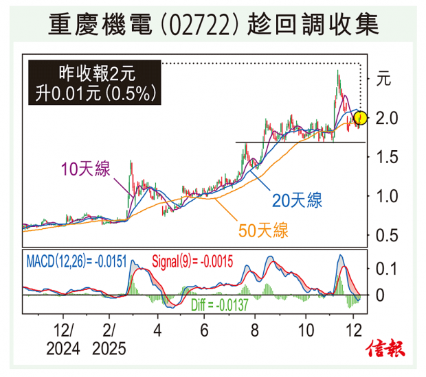 港股跟隨外圍大幅反彈,恒指昨日大升496點報25716,守住雙頂頸線(亦可視為橫行區底部),而且有大成交支持,估計短期反彈可延續,上試20天線(26228)阻力。 上周建議繼續持有並提高目標價至20元的中船防務(00317),昨以大陽燭勁升13%,升破三角形降軌,中國軍工業近年進...全文
