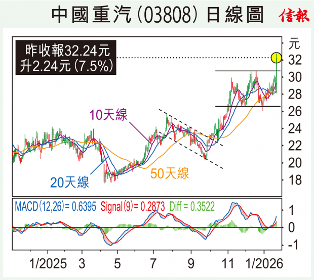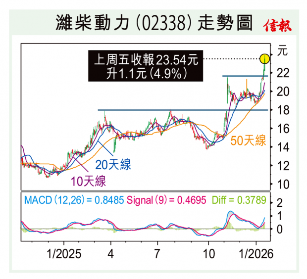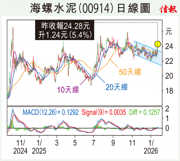 大市上周五紅盤大升逾700點後,昨日市況牛皮,恒指波幅僅189點,收市報26347,升8點,陰陽燭為十字星,料為短線整固,如守穩50天線(25979),後市有望試衝27500關口。 花旗對起重混凝土產品樂觀 中國工程機械工業協會日前...全文
