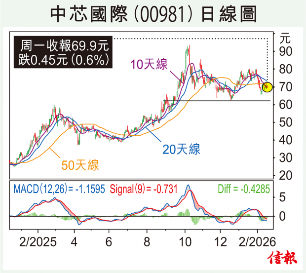 馬年首個交易日,先祝各位財源廣進,身體安康。除夕半日市恒指先挫後揚,收市升138點,報26705,依然在橫行區內反覆。短線料會在50天線(26410)和20天線(26960)之間爭持。 華虹半導體(01347)上月尾大升至124元,本欄去年11月所訂的100元目標價超額完成,其後...全文