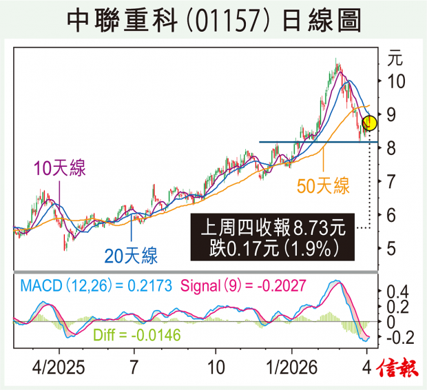 中東戰火不息,拖累不少股份急挫,中聯重科(01157)是其中之一。本欄曾推介此股,並多次提升其目標價,最近一次在1月初,目標價提高至10.50元,結果上月下旬升至10.67元,其後急速調整。 中聯重科是國內工程機械龍頭企業,儘管國內市場低迷,但憑藉出口強勁增長,仍能取得上佳業績,...全文