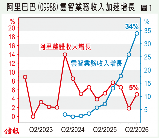 阿里巴巴(09988)截至今年9月底止的第二財政季度業績經調整後的淨利潤大跌72%,惟投資市場早有心理準備,因為集團處於投資轉型期,「AI+雲」及「生活服務與電商結合為大消費平台」兩項策略的投入,導致盈利大跌。不過從收入增長看,「AI+雲」升34%,進一步加速【圖1】,大消費平台策略下的即時零...全文