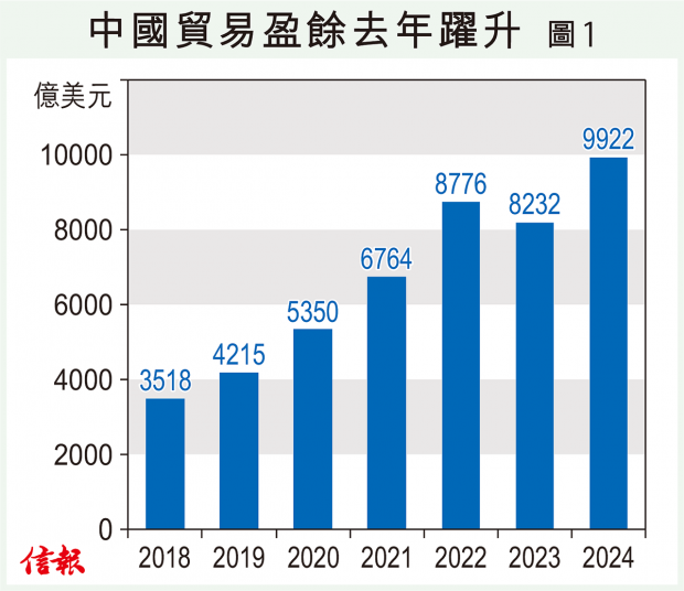 近年內地的出口可以用「勁到無朋友」來形容。去年貿易盈餘接近一萬億美元【圖1】,創歷史新高,一來新技術產品包括電動車、動力及儲蓄電池等全球暢銷,沒有對手;二來還有兩個推手,中國的物價不斷下降,以及名義滙率處於貶值階段,國際競爭力無可比擬。 ...全文