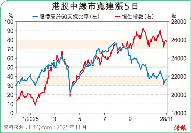 美股在感恩節假期休市前夕(26日)連續第四日造好,道指、標普500指數、納指都收復10天、20天、50天線。美國勞工部剛於上周四(20日)公布,9月的非農新增職位11.9萬個,遠高過市場預期,但由於多達47萬人湧入勞動市場,導致9月的失業率按月升0.1個百分點,至4.4%,成為2021年11月...全文