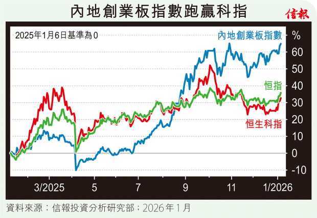 2026年A股首個交易日,一如預期迎來開門紅,滬深指數昨天分別上升1.38%及2.24%。科技股繼續成為資金首選,半導體板塊得到最多主力資金追捧。 另外,受惠人民幣升值,保險股全線升逾半成。A股會否如港股般,大升一日後即泄氣,且看未來幾日的大市如何走。 滬指昨天收報...全文