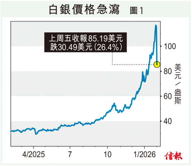 美國聯儲局下任主席人選塵埃落定,由流動性推動的資產升值盛宴很可能暫告一段落。金價上周五曾經急挫12%,低收9%;白銀一度急瀉35%,收市仍跌26.4%【圖1】。加密貨幣也難逃一跌,比特幣上周末曾跌穿78000美元【圖2】...全文