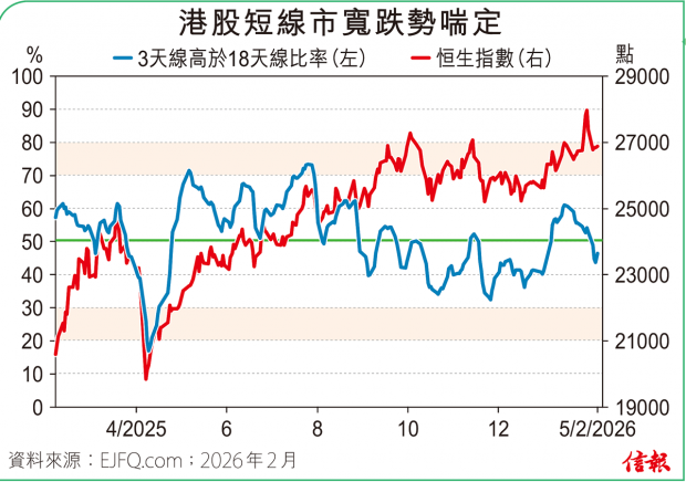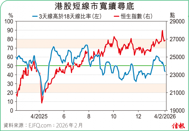 恒指昨維持兩萬七關之下波動,恒生科技指數卻進一步尋支撐,曾挫至5320點,失守2025年11月和12月「雙底」,埋單跌1.84%,報5366點,不但連續3個交易日低於250天線,且從去年峰值6682點累瀉差不多兩成,在「技術熊市」邊緣掙扎。 科指成份股中比亞迪(01211)、小米...全文