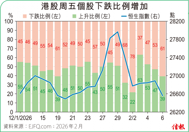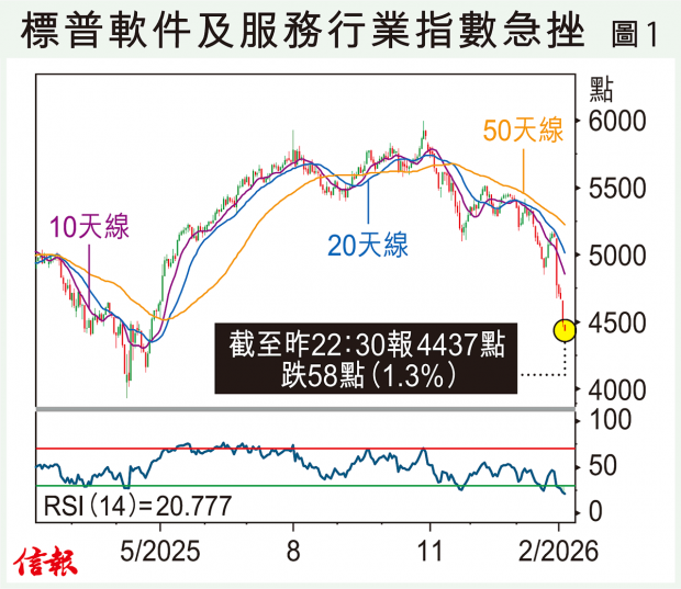 華爾街股市憂慮「AI取代軟件」的拋售潮未止,資金維持流向舊經濟板塊,道瓊斯運輸指數再飆2.37%,科企代表納指跌幅卻擴大至1.51%,去年4月初「解放日」以來第一次連續兩日挫逾1%。 外圍新經濟股搖搖欲墜,本港的恒生科指同病相憐,昨下滑到近7個月低位5267點才反彈,尾段收復失地...全文