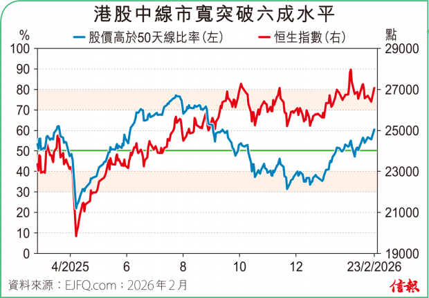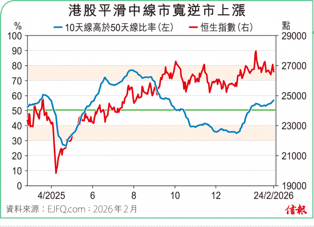 踏入2026年,恒生指數迄今(截至2月19日)表現尚算不俗,累計升幅約4.2%。若以美國上市、追蹤MSCI香港指數的iShares MSCI Hong Kong ETF(EWH)作為參考,同期升幅更達10.9%,幾乎較恒指多出一倍。港股相對部分亞洲新興市場如南韓及泰國股市雖明顯落後,惟與美股比...全文