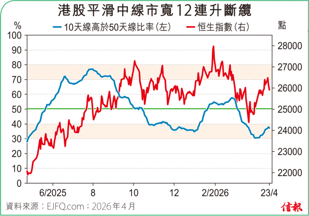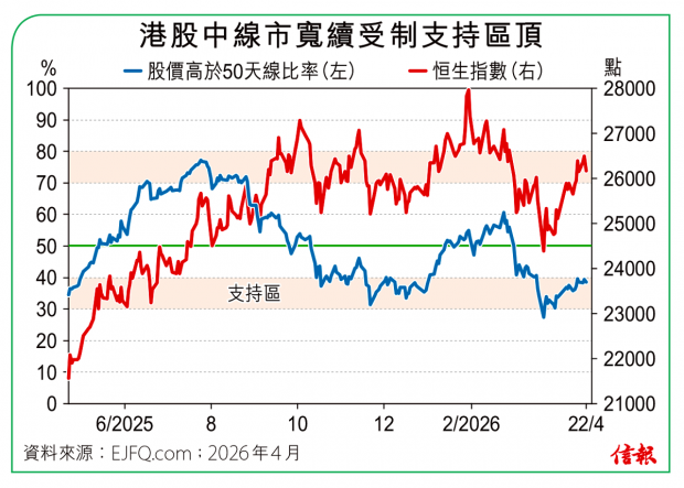 港股周五低開181點,最多挫275點,於20天線位置找到支撐便回勇,但兩萬六關得而復失,埋單微升62點,報25978點,在連漲3個星期後按周回吐0.7%,維持橫行格局。 恒指2020年至2023年經歷連續4年跌市重創,2024年否極泰來,由14794點「長熊」谷底回升,2025年...全文