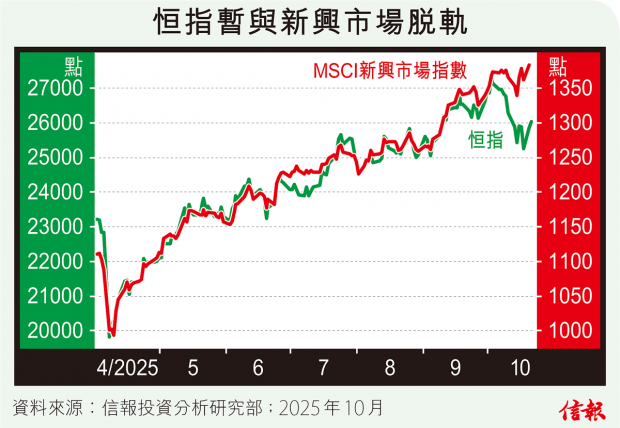 港股昨勁漲611點,惜未能完全收復上周五失地。中美關係略為緩和,多類資產皆反彈,黃金與石油卻例外,昨亞洲時段金價於每盎斯4300美元水平波動,布蘭特期油則在每桶60美元上爭持,兩者風險屬性不同而齊齊偏軟,令金油比率繼續高企。 金油比率上周曾攀抵70.86倍,為超過5年高位,分析關...全文