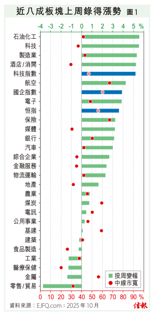 美國財長貝桑周三(15日)表明不想與中國的衝突升級,正努力安排總統特朗普和國家主席習近平會晤,又提到白宮可能延長關稅休戰期限,以換取中方推遲實施新的稀土出口管制。中美貿易戰憂慮紓緩,利好投資氣氛,A股持續向上,滬深300指數昨埋單報4618點,微漲12點或0.26%,已兩個交易日企穩10天線(...全文