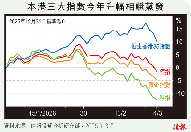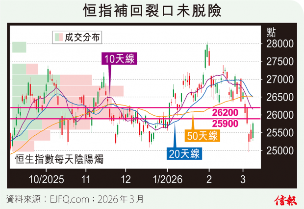 港股連續兩個月開局失利,2月首日急滑611點是因黃金白銀價格1月底衝高插水拖累;來到3月,昨天恒指受中東戰事打擊,一度跌穿兩萬六關,下午無法隨A股倒升,埋單仍挫570點,報26059點,100天線失守。 4年前冬季奧運會剛落幕,俄羅斯揮軍入侵烏克蘭,至今停戰缺乏進展;到2026年...全文