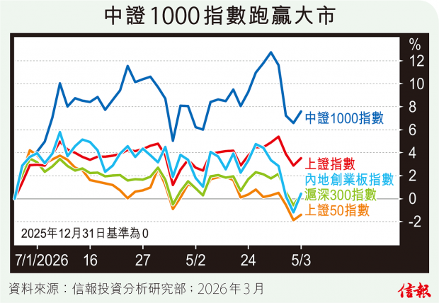 亞洲股市「黑色星期三」未蔓延到華爾街,市傳伊朗有意提出和談,VIX即挫逾一成,三大指數也回穩,進賬介乎0.49%至1.29%,如計算2026年迄今,道指與標普500指數分別上升1.41%及0.35%,卻不及追蹤小型股的羅素2000指數。 羅素2000指數今年1月22日破頂見273...全文