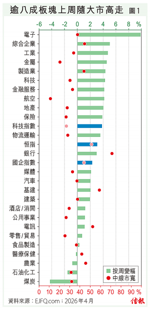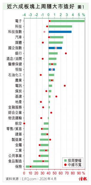美國和伊朗同意有條件停火兩星期,刺激環球股市大反撲,港股也不例外,惟恒指26000點關口得而復失,上周五(10日)收報25893點,按周再漲777點(3.09%)。90隻藍籌有75隻錄得按周升勢,37隻跑贏恒指;晶片股中...全文