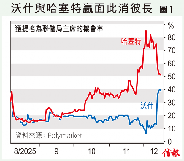 美國聯儲局主席人選跑馬仔進入大直路,總統特朗普上周五接受《華爾街日報》訪問時露了口風,稱聯儲局前理事沃什(Kevin Warsh)及現任白宮經濟委員會主任哈塞特(Kevin Hassett)都是最佳人選。博彩網站Polymarket盤口顯示,沃什上位的機會率上周急升,與哈塞特叮噹馬頭。不過,沃...全文
