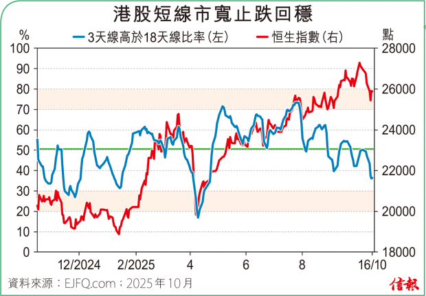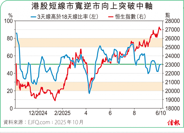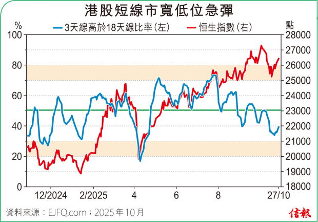 ❶大市表現 港股第四季開局最多升526點,收報27287點,漲431點(1.61%)。缺乏北水下主板成交金額僅2224.68億元,全日沽空金額312.08億元,沽空比率回升至14.03%。整體2600多隻港股升跌比例55︰45。3天線高於18天線...全文