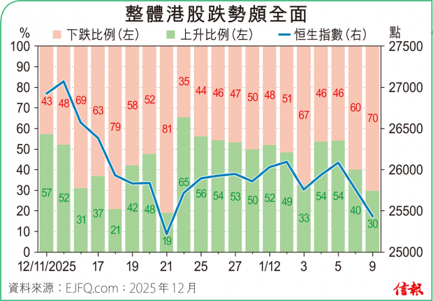❶大市表現 恒指低開失守50天線,最多瀉562點,收報25930點,急挫454點(1.72%)。主板成交金額增至2421.12億元,全日沽空金額412.85億元,沽空比率回落至17.05%。整體2600多隻港股升跌比例21:79。三線市寬皆向下,...全文