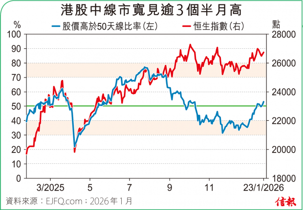 ❶大市表現 港股2026年首個交易日高開86點後曾飆715點,收報26338點,漲707點(2.76%);按周上揚519點(2%)。周五缺乏北水下主板成交金額1408.64億元,全日沽空金額203.73億元,沽空比率續降至14.46%。整體260...全文