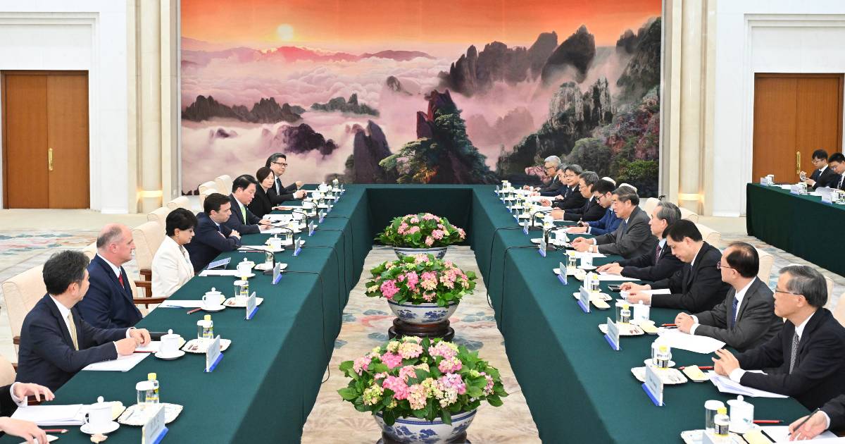 中共中央政治局委員、國務院副總理何立峰下午會見美國雅培公司、英國保誠集團、韓國SK集團等跨國公司負責人,就全球和中國經濟形勢、擴大對華投資等交換意見。