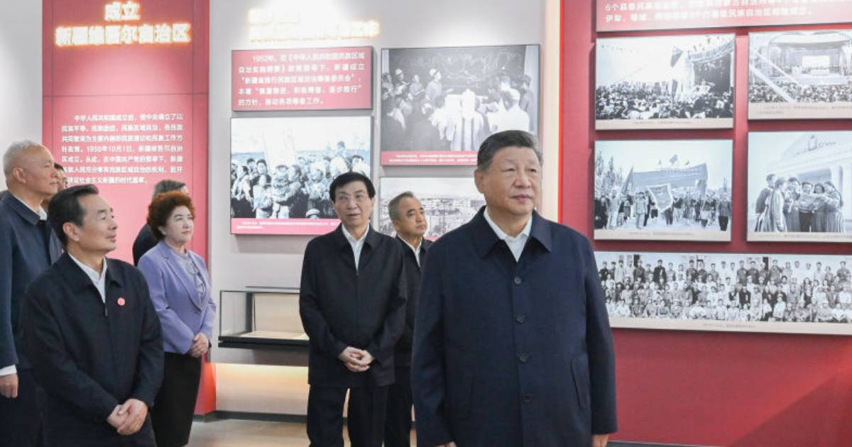 新華社報道,國家主席習近平今早在烏魯木齊文化中心展覽館參觀新疆維吾爾自治區成立70周年主題成就展。